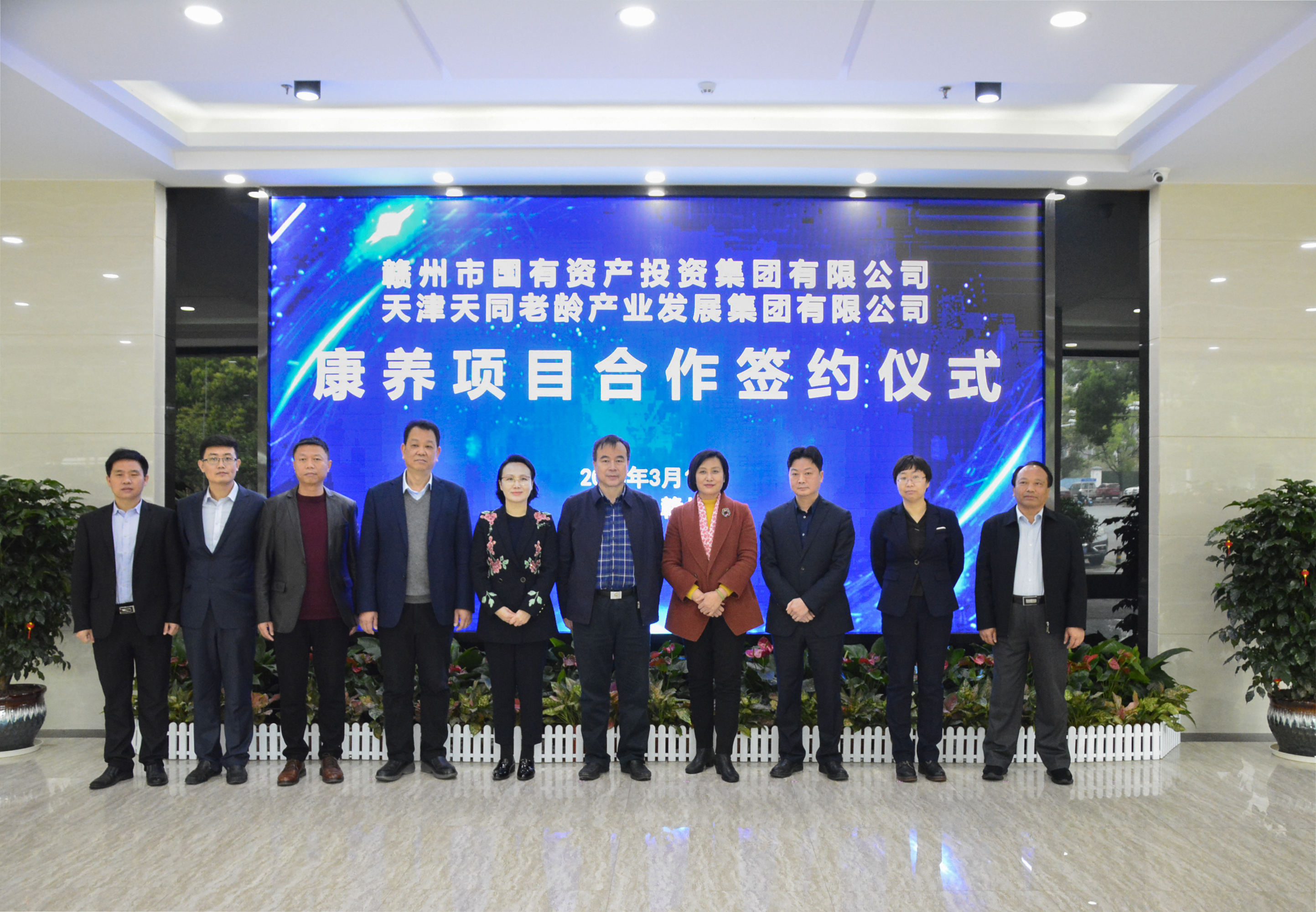 3月18日上午,赣州市国有资产投资集团与天津天同老龄产业发展集团康养项目合作签约仪式在赣州举行。市国资委党委书记、主任高志坚,市民政局党组书记、局长黄丽红,市国投集团董事长罗迅、总经理谢忠祥,天津天同集团董事长张婼婼等出席签约仪式。