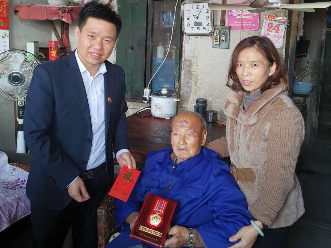 为纪念英雄的中国人民志愿军和朝鲜人民及军队一道舍生忘死、浴血奋战、保卫和平、反抗侵略的抗美援朝战争胜利70周年,市国投集团党委委员、副总经理谢晓斌于10月23日慰问了赣州木材厂抗美援朝老兵钟存玉,发放了荣誉勋章和慰问金,为他送去了中共中央、国务院、中央军委的关怀、温暖和诚挚的问候,同时详细询问了老兵的衣、食、住、行,一起回顾抗美援朝战争时期的经历和往事,对老兵保家卫国作出的贡献表示崇高敬意。