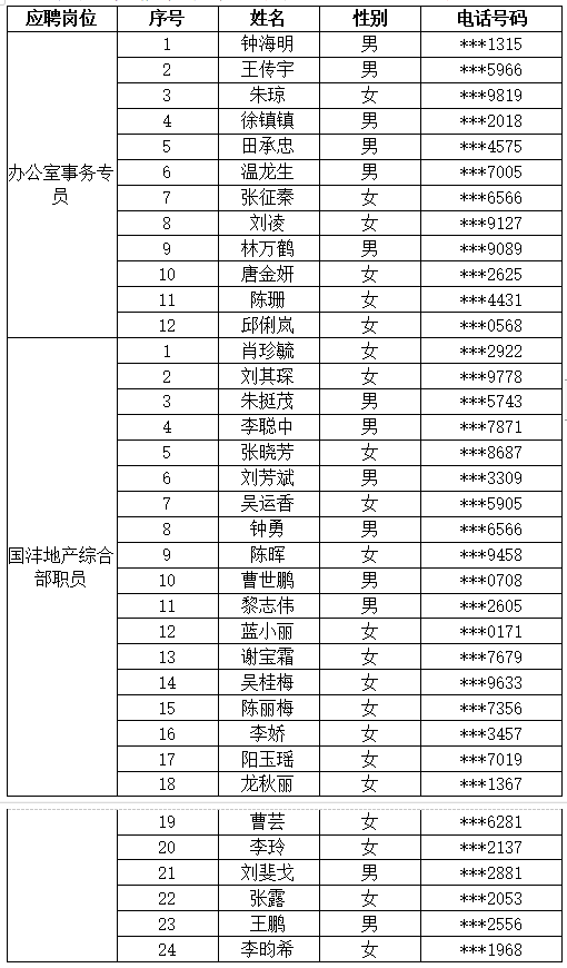 赣州市国有资产投资集团有限公司公开招聘办公室事务专员、国沣地产综合部职员岗位入围笔试人员公示