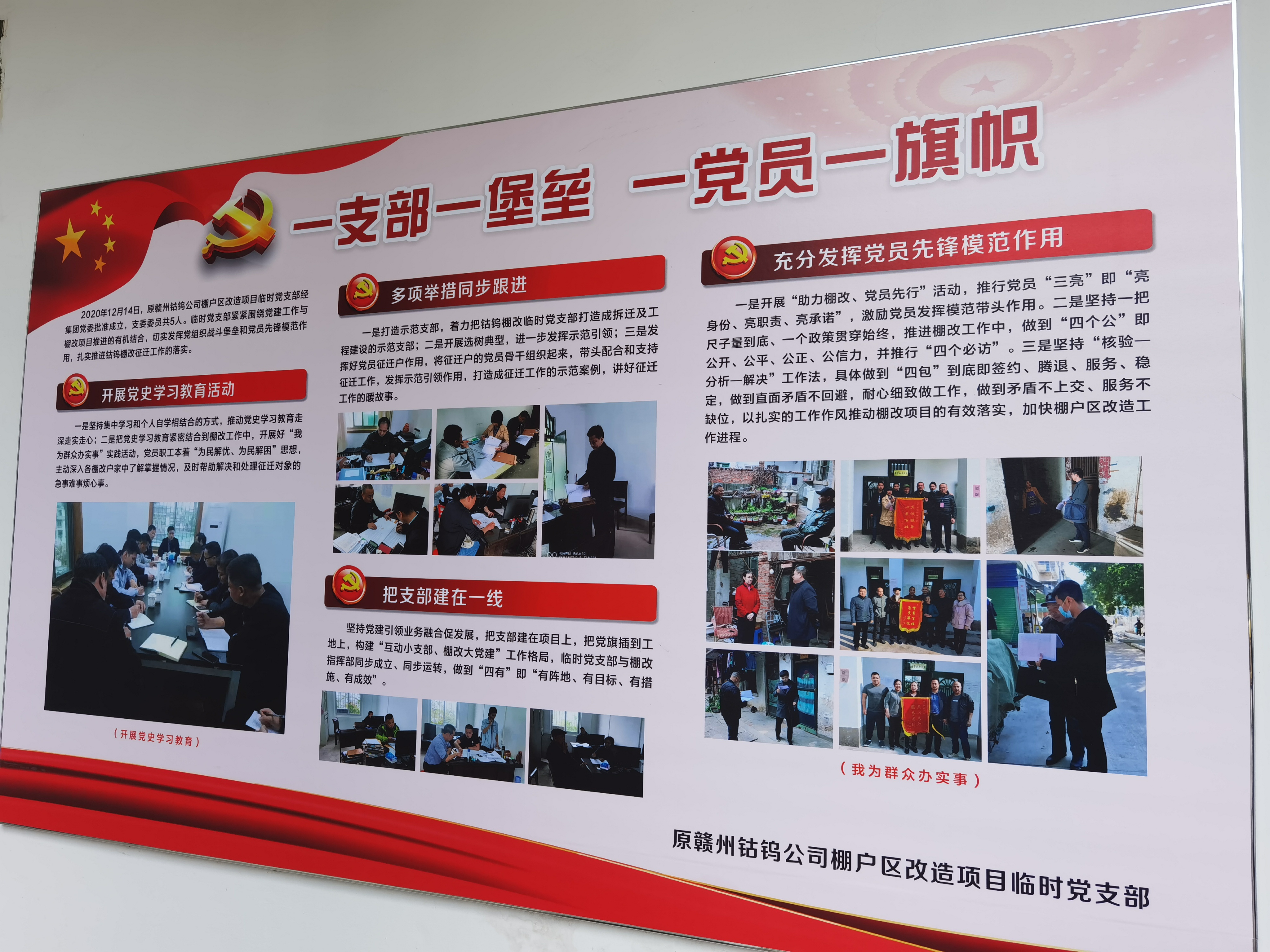 日前,从原赣州钴钨公司棚改项目传来好消息,660户安置对象协议签订和腾房率超过97%,旧房拆除全面启动,规划设计等建设的前期工作同步加快推进,工作进度超越预期,任务有望提前完成,众多棚改户热切期盼已久的“新居梦”将照进现实。去年以来,为坚决落实市委市政府决策部署,赣州市国投集团党委将停滞多年的钴钨棚改任务纳入集团重中之重的工作,积极向上争取政策,主动与相关部门沟通对接,下定决心彻底解决好这一历史遗留问题。随即从集团各部门、各下属企业抽调50余名精兵强将,组成棚改工作组,并成立临时党支部,充分发挥支部战斗堡垒作用和15位党员的先锋模范作用,逐步理顺了棚改安置政策、资金缺口、调度机制等重点难点问题。在短短四个月不到的时间里,取得突破性进展,做到了始终平稳有序推进,得到相关部门和棚改户的一致好评,成为“我为群众办实事”的生动实践。