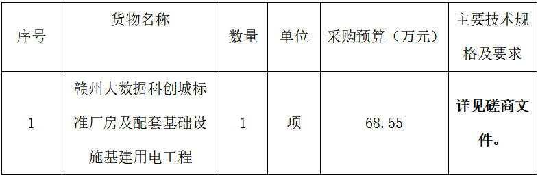 赣州大数据科创城标准厂房及配套基础设施基建用电工程磋商公告
