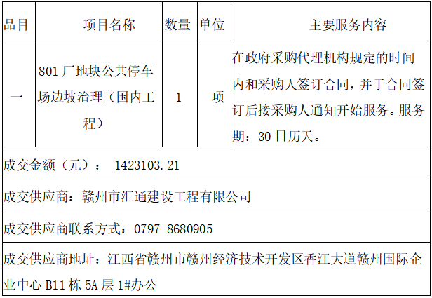 801厂地块公共停车场边坡治理项目竞争性磋商的成交结果公告