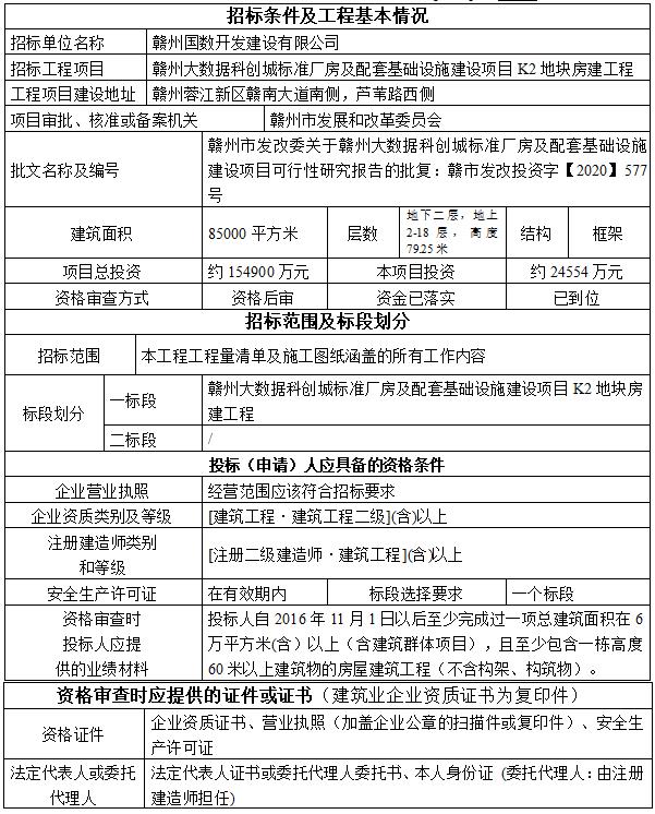 赣州大数据科创城标准厂房及配套基础设施建设项目K2地块房建工程