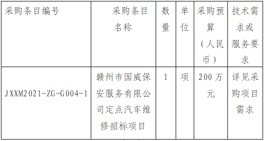 赣州市国威保安服务有限公司定点汽车维修招标项目(重新招标)公开招标公告