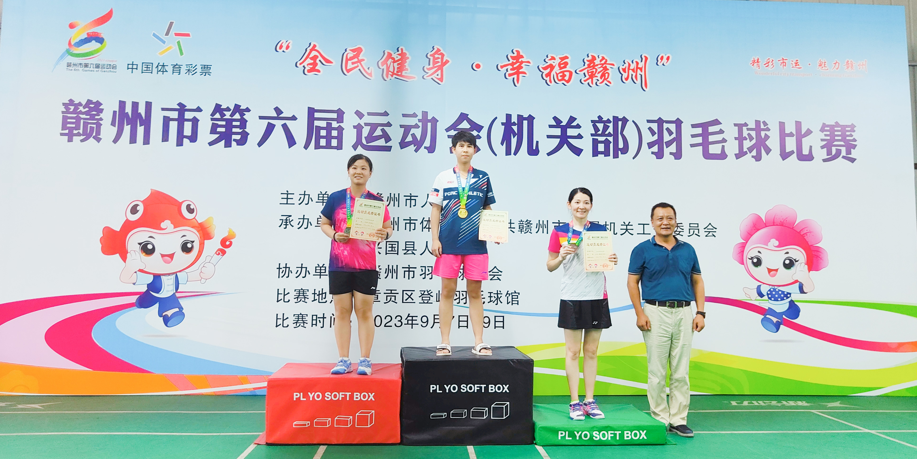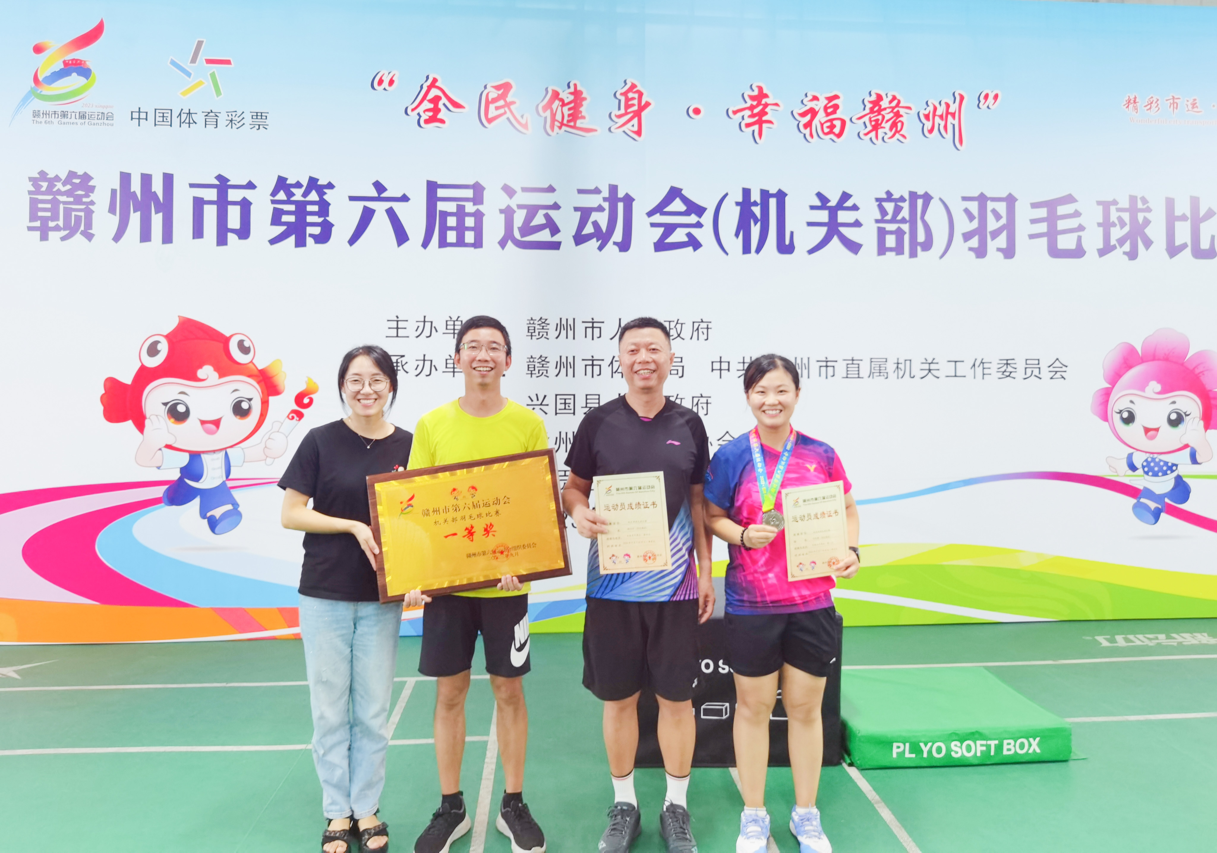 9月9日下午,赣州市第六届运动会(机关部)羽毛球赛落下帷幕,市国投集团代表队荣获“团体一等奖”,集团党委副书记、总经理谢忠祥获领导组第四名,集团下属国威保安公司肖松晴获女子组亚军!