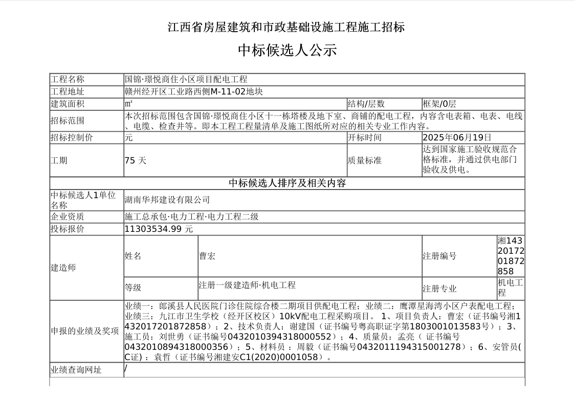 首页 新闻动态 国锦·璟悦商住小区项目配电工程招标工程中标候选人公示