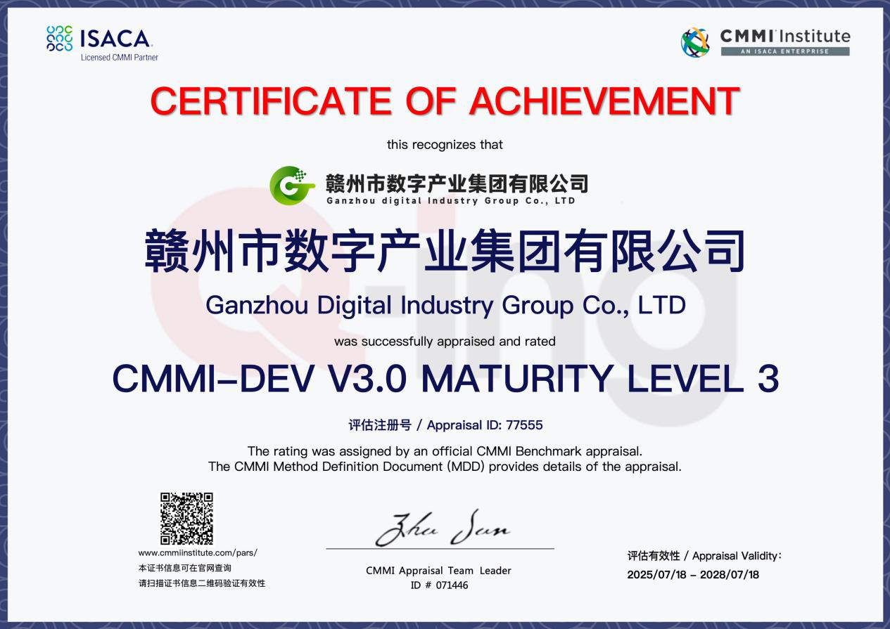 近日,经CMMI研究院官网公布,赣州国投集团所属市数字产业集团正式通过CMMI(能力成熟度模型集成)三级认证。这不仅是对公司软件研发与项目管理体系规范化的高度认可,更是其技术实力和服务能力达到国际先进水平的重要标志,标志着公司在核心竞争力和市场影响力上实现了一次标志性跨越。