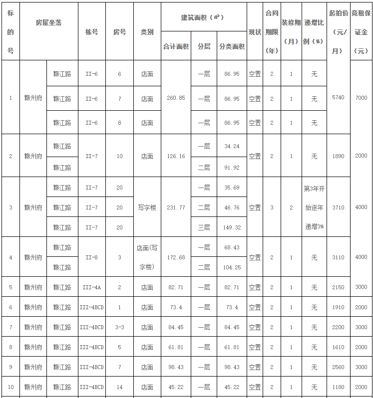 受赣州市国锦房地产开发有限公司委托,我公司定于2021年1月29日14:30在赣州市公共资源交易中心公开招租下列资产,现将有关事项公告如下: