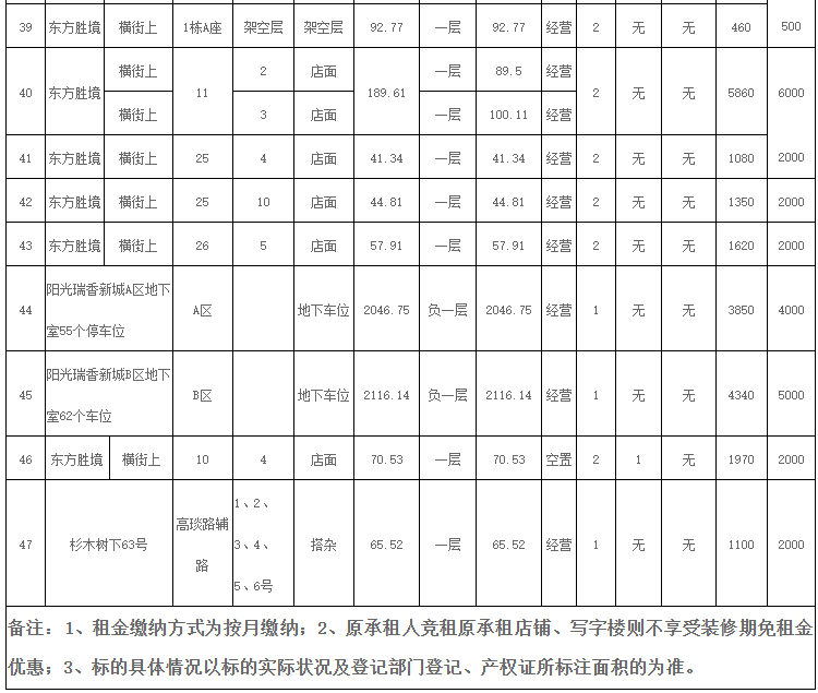 五、经营范围:此次竞租的各标的经营范围须符合国家法律法规规定的相关行业。
