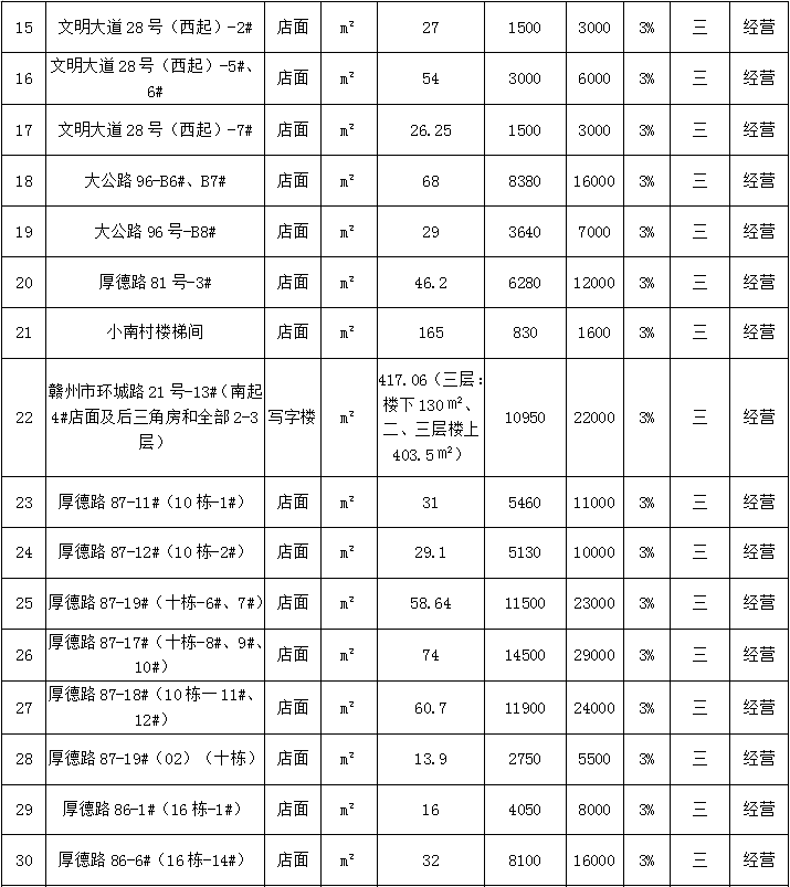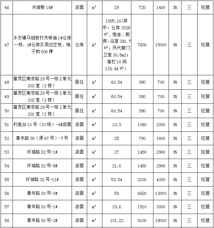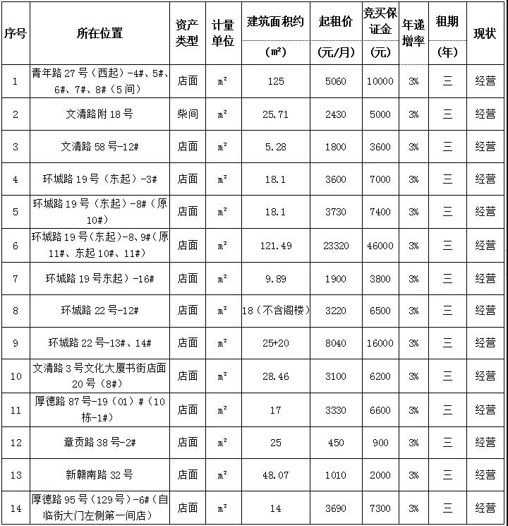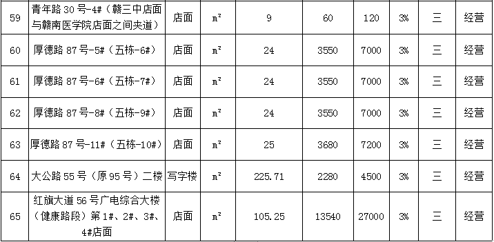 赣州市振龙资产管理有限公司六十五宗资产公开招租公告