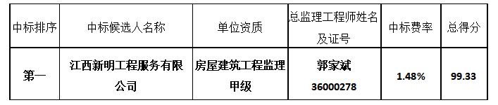 现初步确定中标排序第 一 的江西新明工程服务有限公司为本项目中标单位。