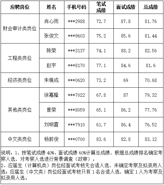 赣州市国投集团2021届应届大学毕业生公开招聘入闱考察人员公示
