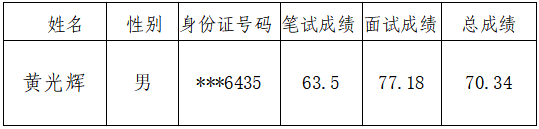 根据《赣州市国资委公开招聘出资监管企业内设监事会工作人员公告》, 因1名考察人选经考察不合格,根据公开招聘方案规定,按该职位总成绩从高分到低分顺延递补考察对象,递补以下人员进入考察: