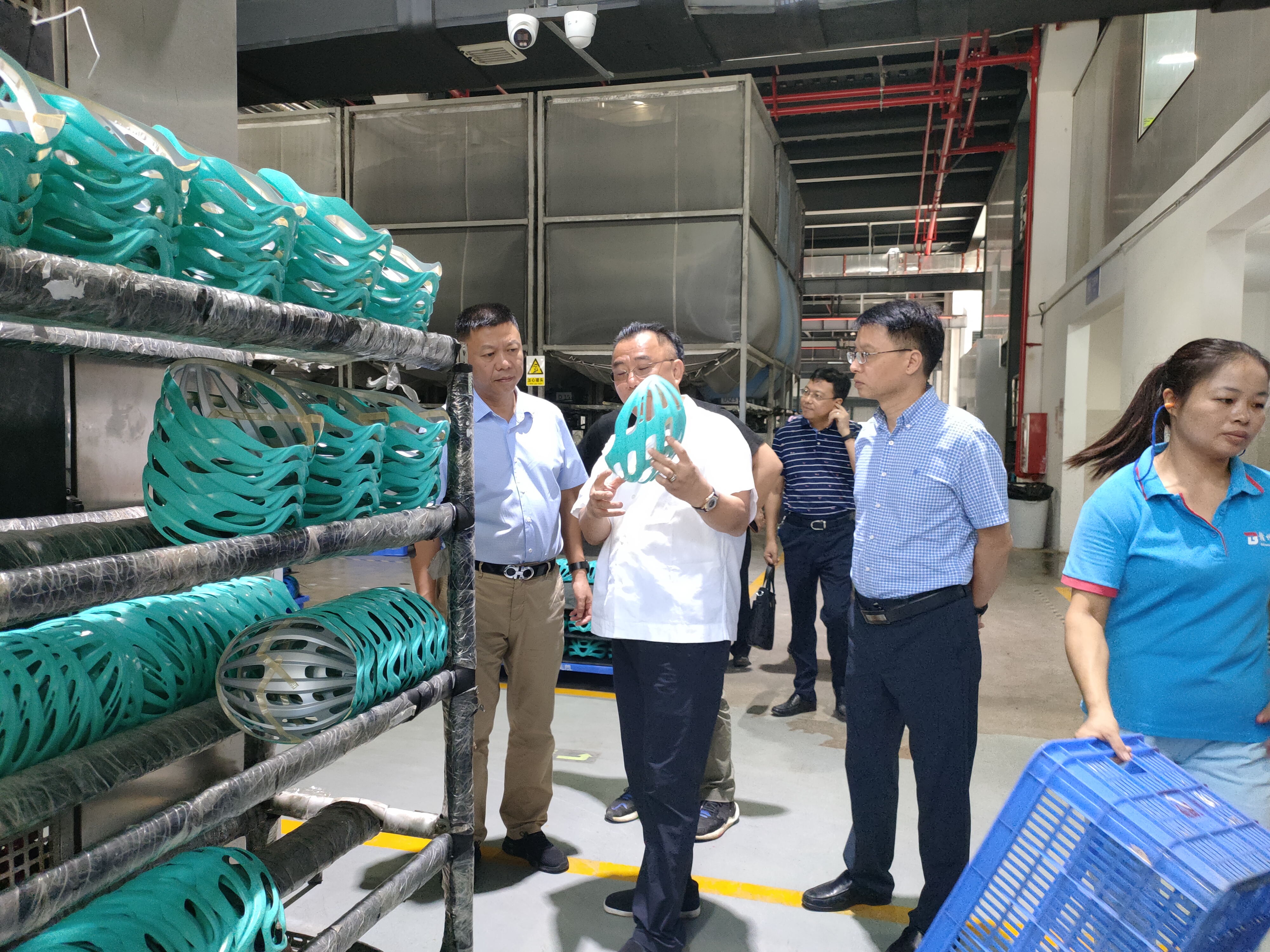 谢忠祥一行还来到上犹工业园调研溢联科技项目,深入生产车间详细了解企业生产经营状况和未来发展走向。谢忠祥指出,随着公安部“一盔一带”行动的开展,头盔行业迎来蓬勃发展,溢联科技作为“一盔一带”的倡导者,深耕头盔行业二十多年,参与了头盔“新国标”的编制,具有做大做强的技术、实力和潜力。谢忠祥表示,国投集团将发挥市重大工业引导资金和国有资本运营改组试点平台优势,加快引导资金落地,未来将加强与企业进一步合作深度,积极推动企业做大做强和上市发展,争取实现中国头盔“第一股”。