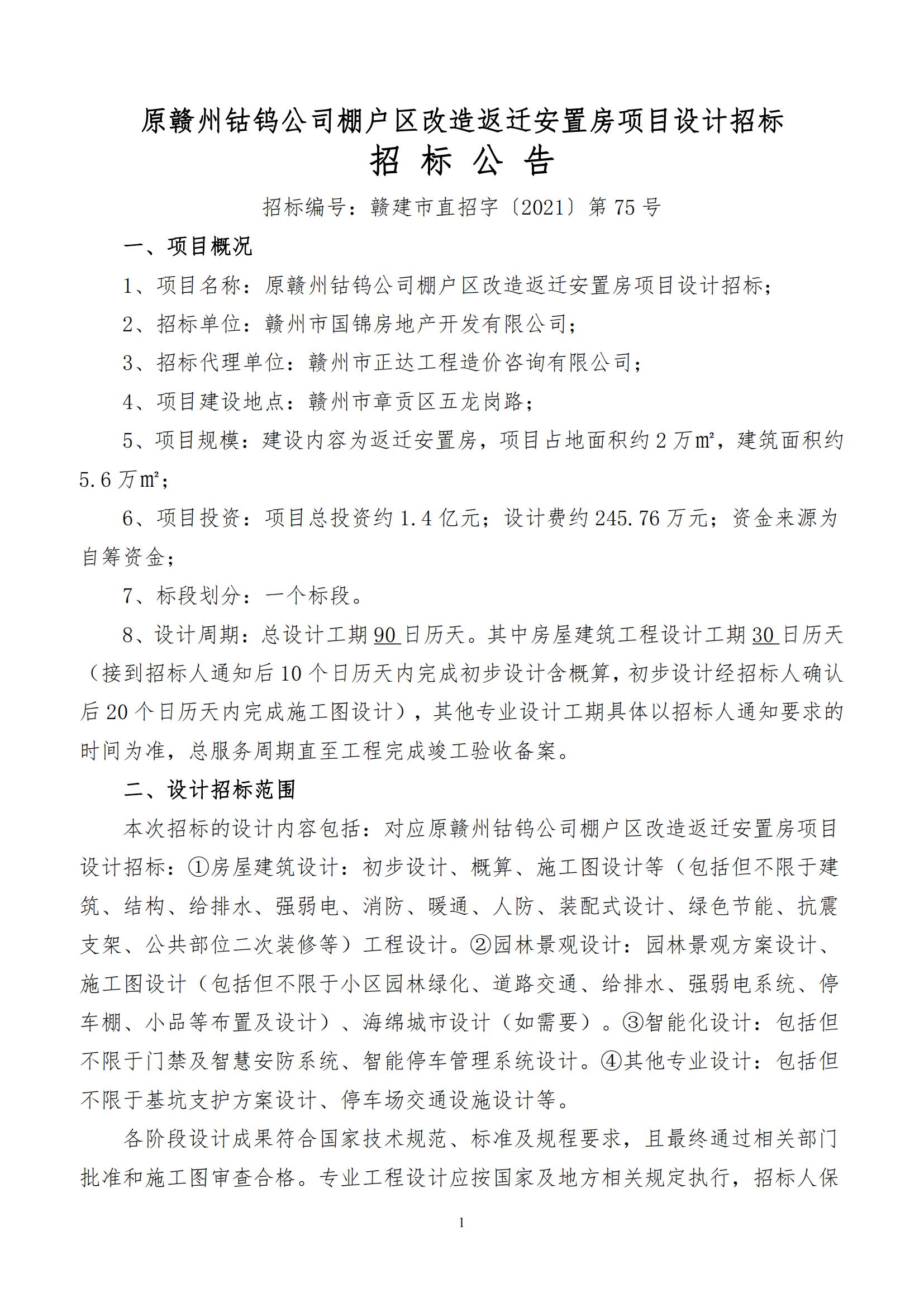 首页 新闻动态 原赣州钴钨公司棚户区改造返迁安置房项目设计招标公告