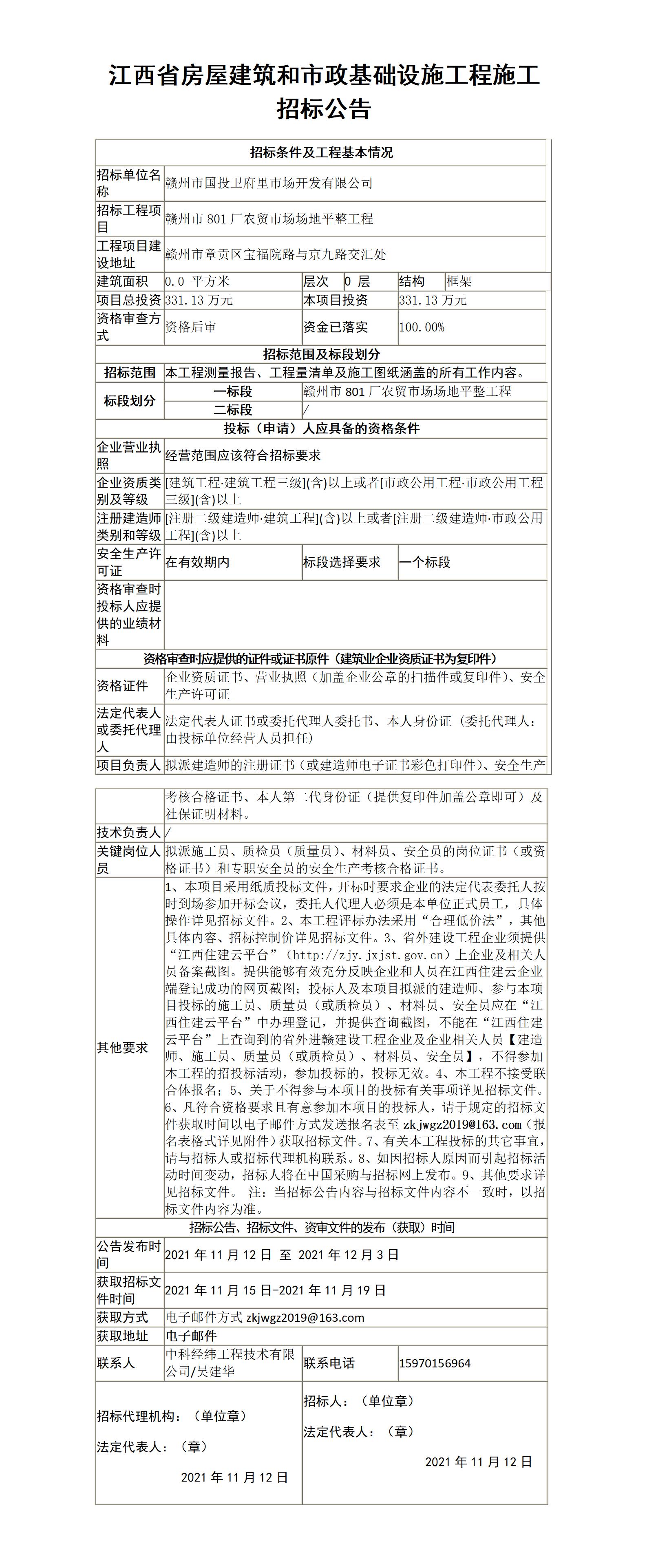 首页 新闻动态 赣州市801厂农贸市场场地平整工程招标公告