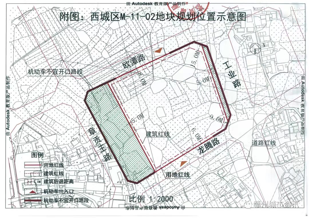 西城区M-11-02地块位于赣州市经开区工业路西侧、龙腾路北侧,地块面积40680.3㎡(约61.02亩),土地用途为居住用地(城镇住宅用地、商业用地),出让年限为城镇住宅用地70年、商业用地40年。容积率≤2.2,建筑密度≤30%,绿地率≥30%,楼面价约4033元/㎡。
