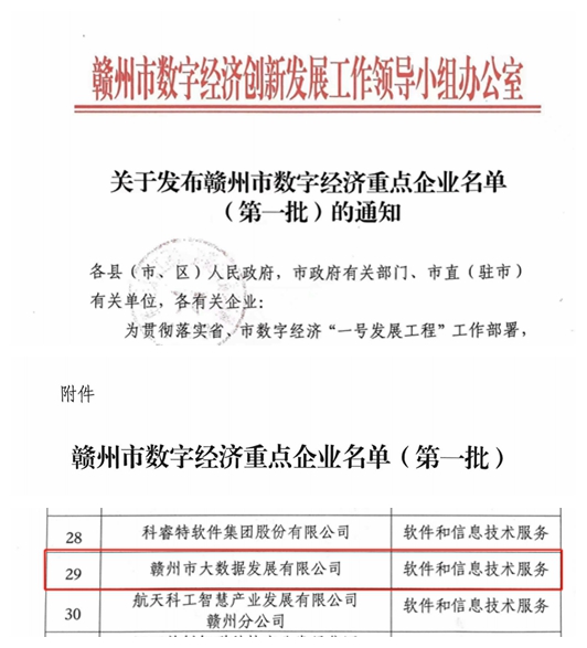 大数据公司入选赣州市首批数字经济重点企业