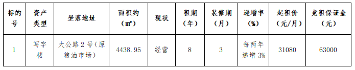 大公路1宗资产公开招租公告