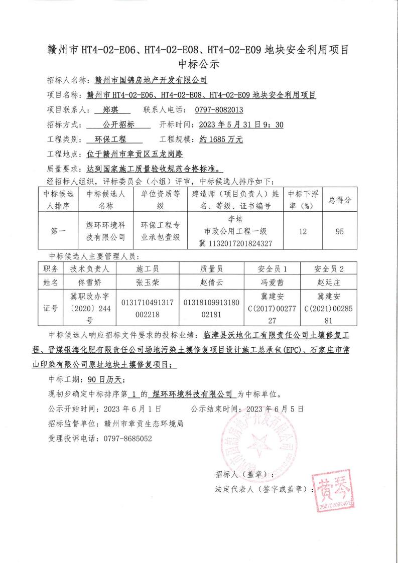 首页 新闻动态 赣州市HT4-02-E06、HT4-02-E08、HT4-02-E09地块安全利用项目中标公示