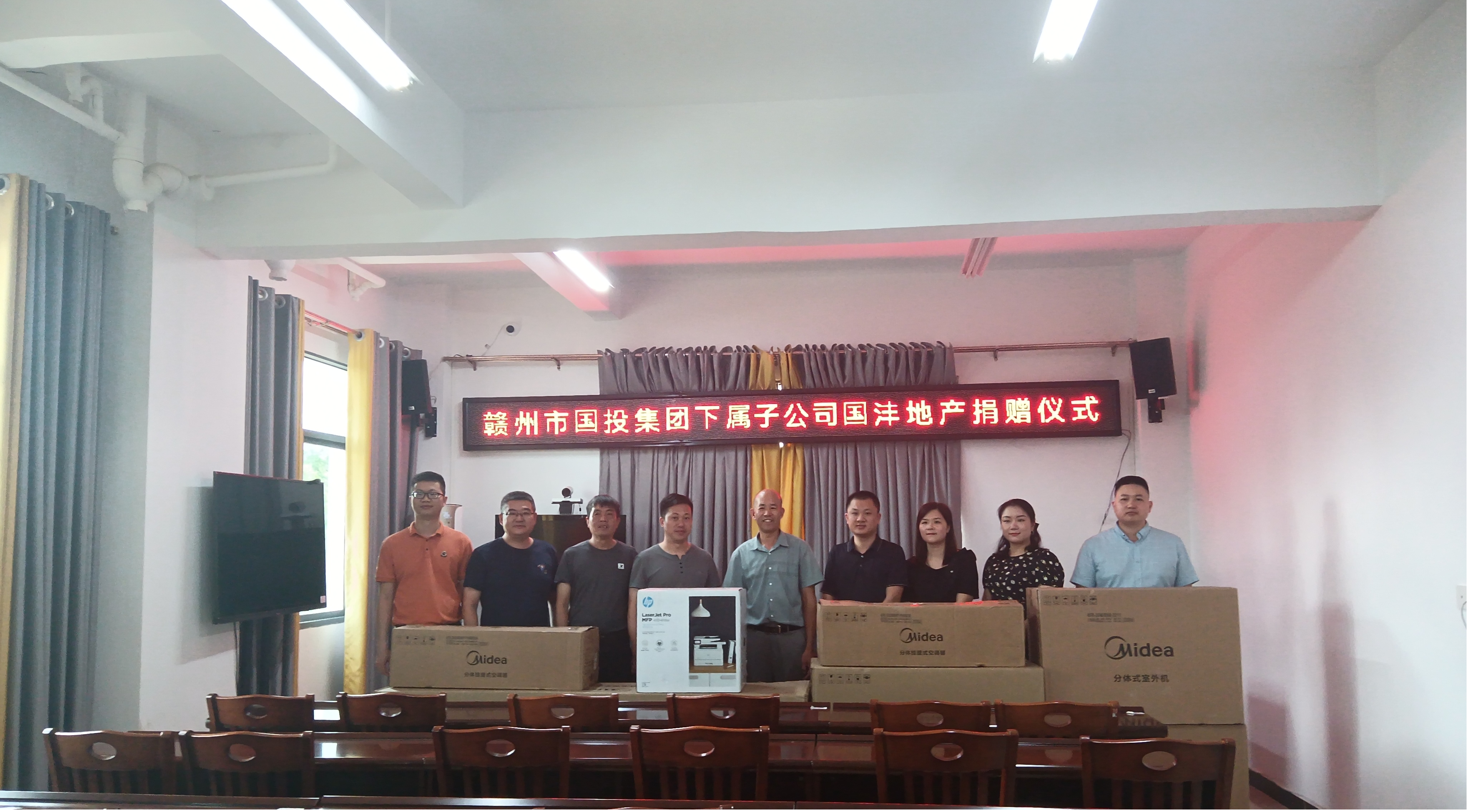 土龙村地处偏僻、交通不便,村委会办公条件比较落后。在这炎炎夏日,国沣地产公司了解到土龙村村委工作环境亟待改善,主动对接,积极响应,捐赠1台打印机和3台空调以改善土龙村办公场所环境,提高村干部工作效率。在捐赠仪式上,土龙村对此次国沣地产公司的捐赠表示真诚的感谢。