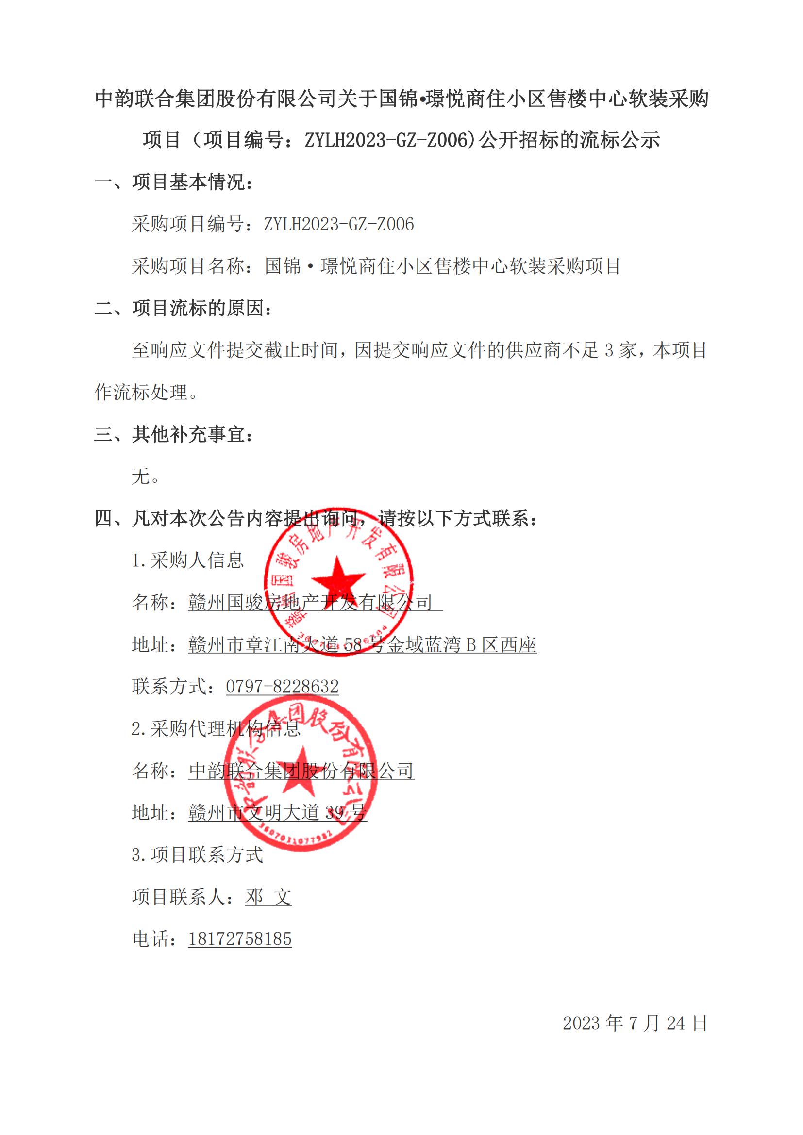 首页 新闻动态 关于国锦·璟悦商住小区售楼中心软装采购项目(项目编号:ZYLH2023-GZ-Z006)公开招标的流标公示