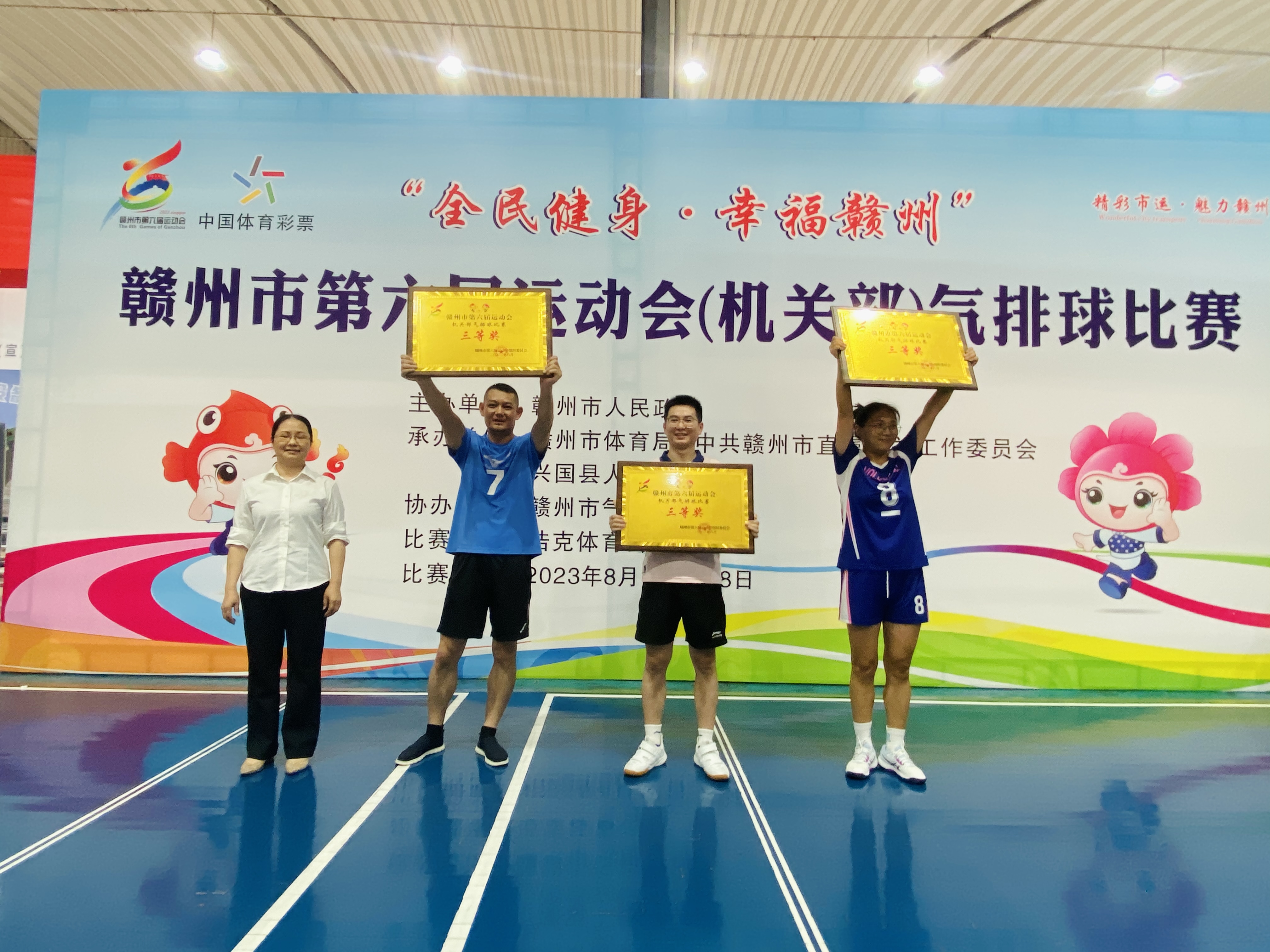 8月18日下午,赣州市第六届运动会(机关部)气排球比赛落下帷幕,市国投集团以男子组第7名、女子组第6名的成绩荣获“团体三等奖”,男队队员罗发鑫、女队队员胡红被评为“体育道德风尚奖运动员”。