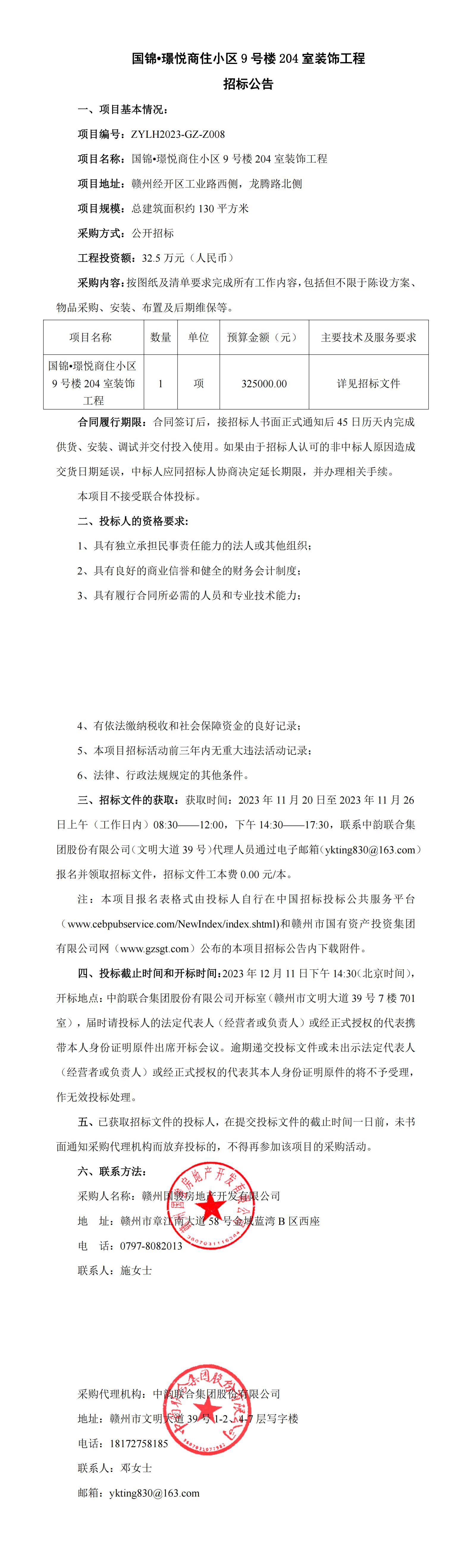 首页 新闻动态 国锦•璟悦商住小区9号楼204室装饰工程招标公告