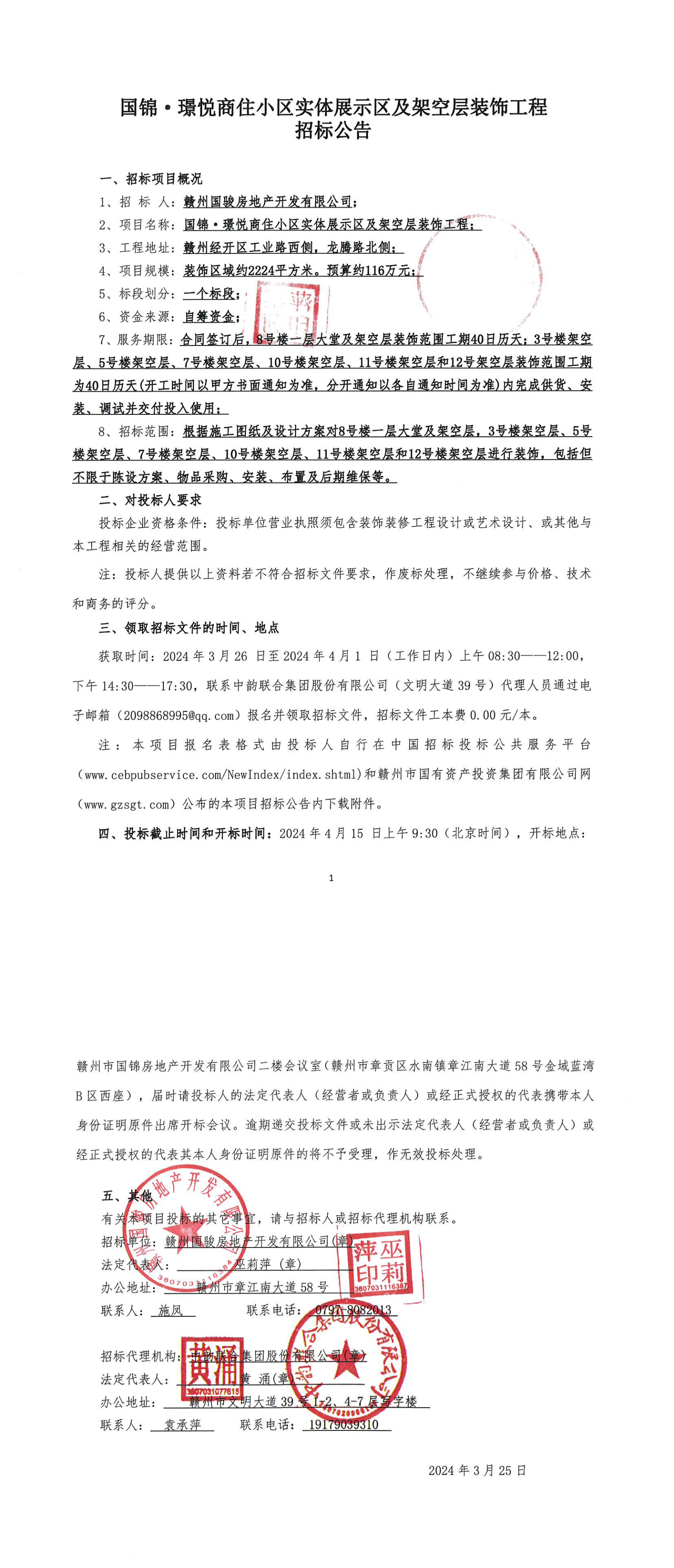 国锦·璟悦商住小区实体展示区及架空层装饰工程招标公告