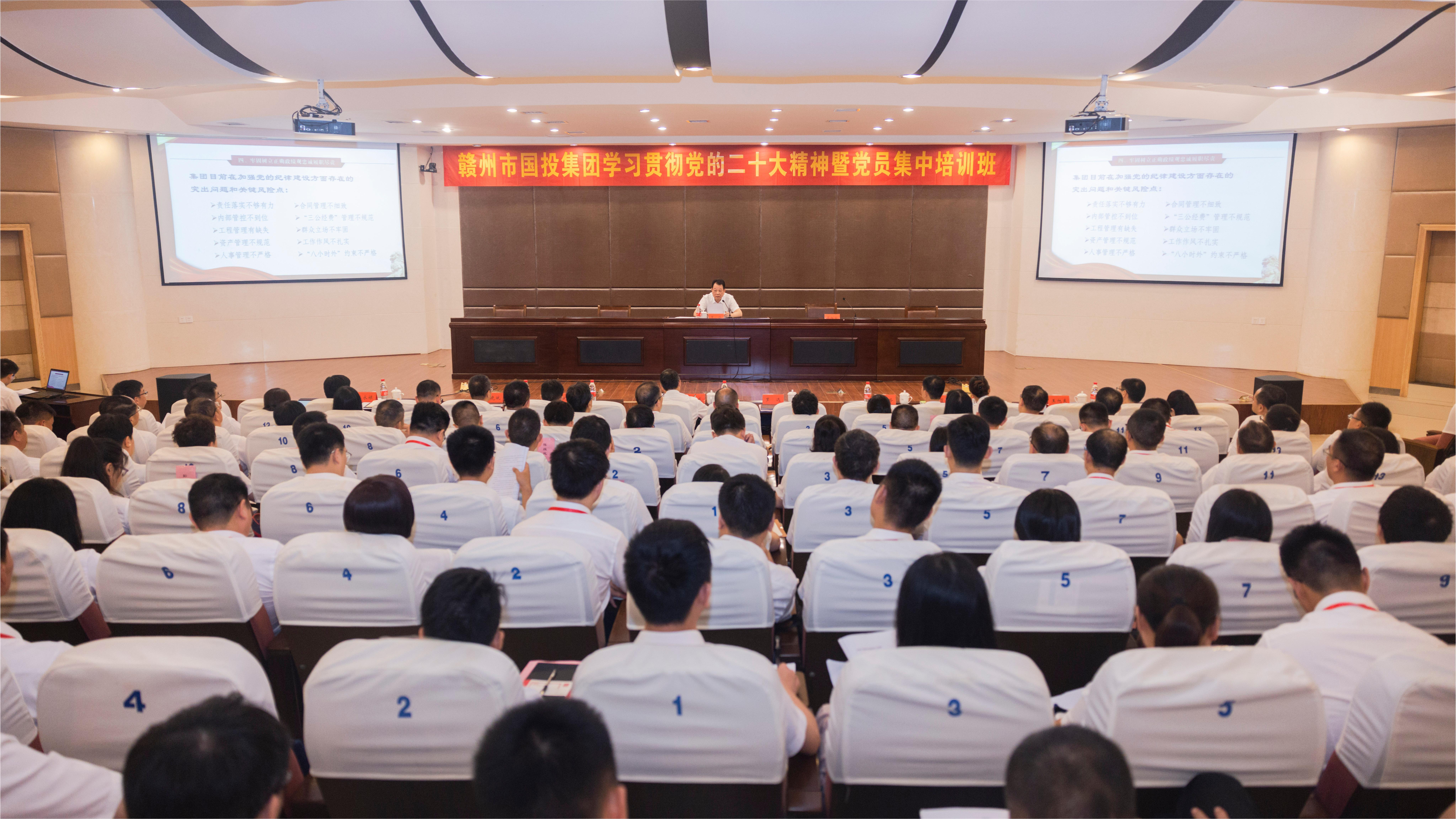 6月14日下午,赣州市国投集团党委书记、董事长罗迅为集团全体党员、发展对象和入党积极分子作党纪学习教育专题党课报告。