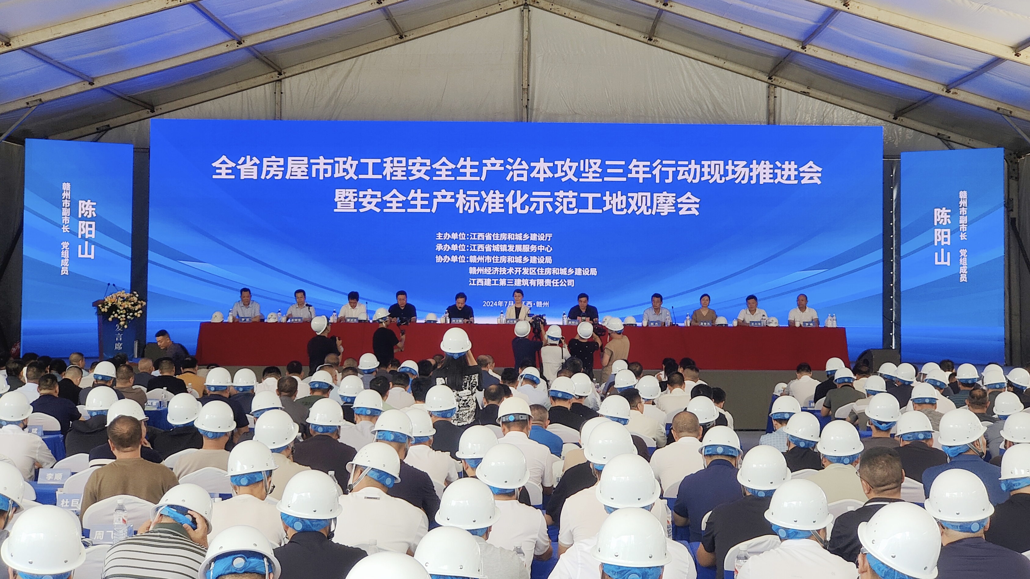 7月12日,全省房屋市政工程安全生产治本攻坚三年行动现场推进会暨安全生产标准化示范工地观摩会在赣州市国投集团旗下国锦璟悦项目工地举行。省住房和城乡建设厅党组成员、副厅长任红丽,市政府副市长、党组成员陈阳山,省城镇发展服务中心主任刘卫国等出席。