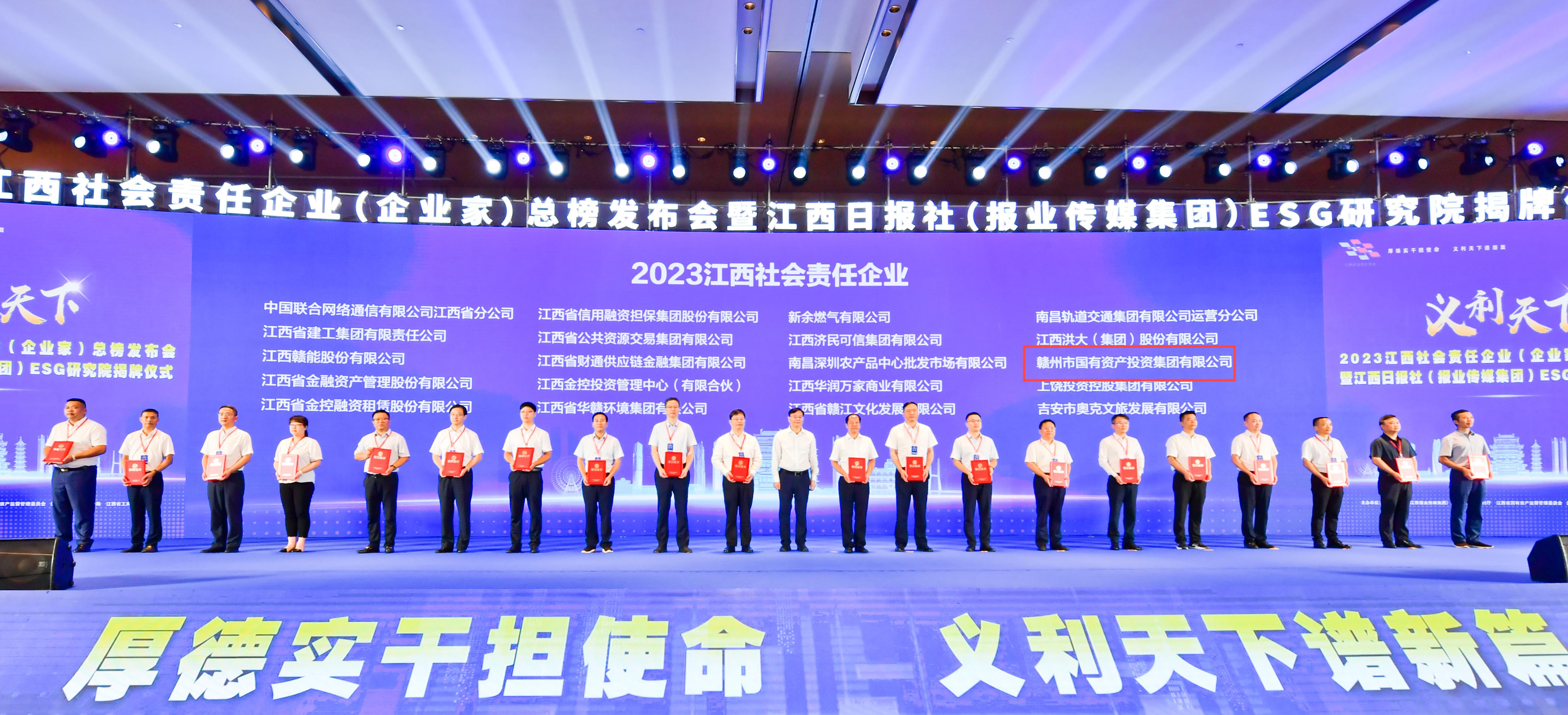 喜报!赣州市国投集团荣膺“江西社会责任企业”称号