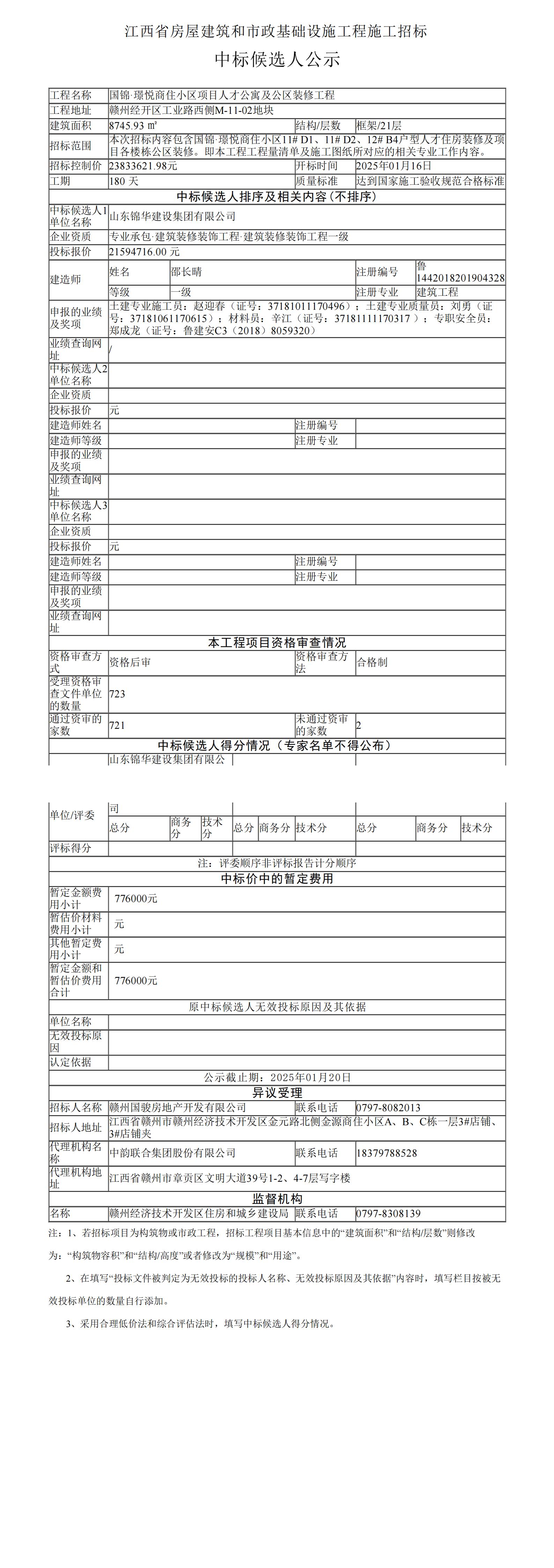 首页 新闻动态 国锦·璟悦商住小区项目人才公寓及公区装修工程中标候选人公示
