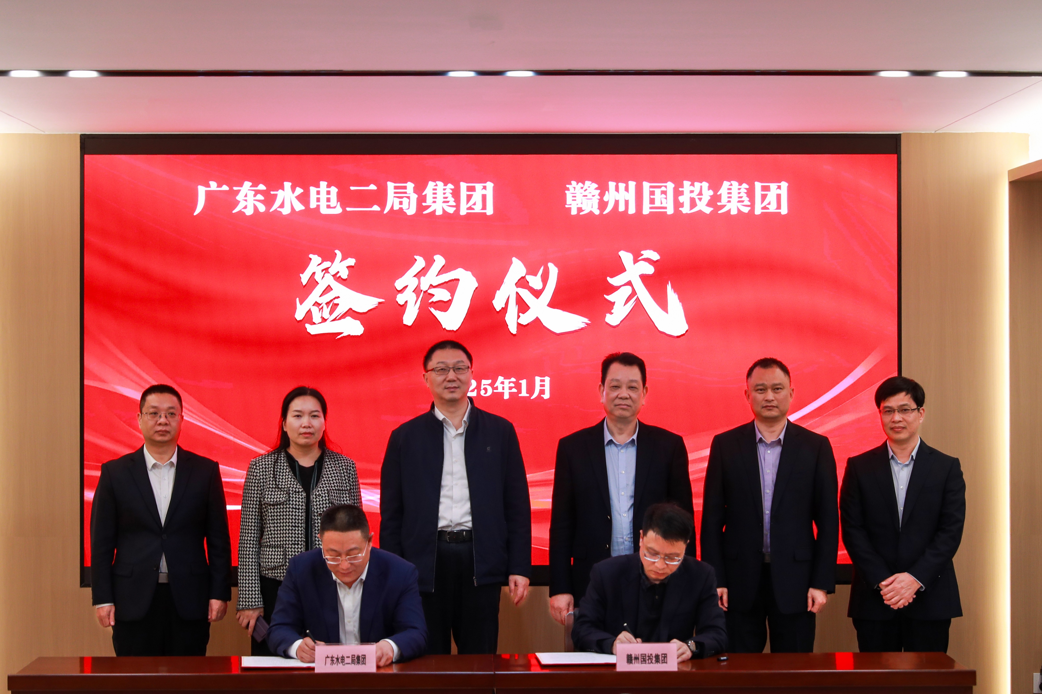 1月24日,赣州市国投集团与广东水电二局集团签署战略合作协议。今后,双方将充分发挥各自优势,在清洁能源开发等领域开展全面深入合作,实现互利共赢。赣州市国投集团党委书记、董事长罗迅,党委副书记、总经理熊建华,党委委员、副总经理刘小军、王永禄,广东水电二局集团党委书记、董事长王桂生,党委委员、副总经理蔡勇、罗凌云等出席交流座谈会暨签约仪式,双方相关部门、子公司负责人参加。