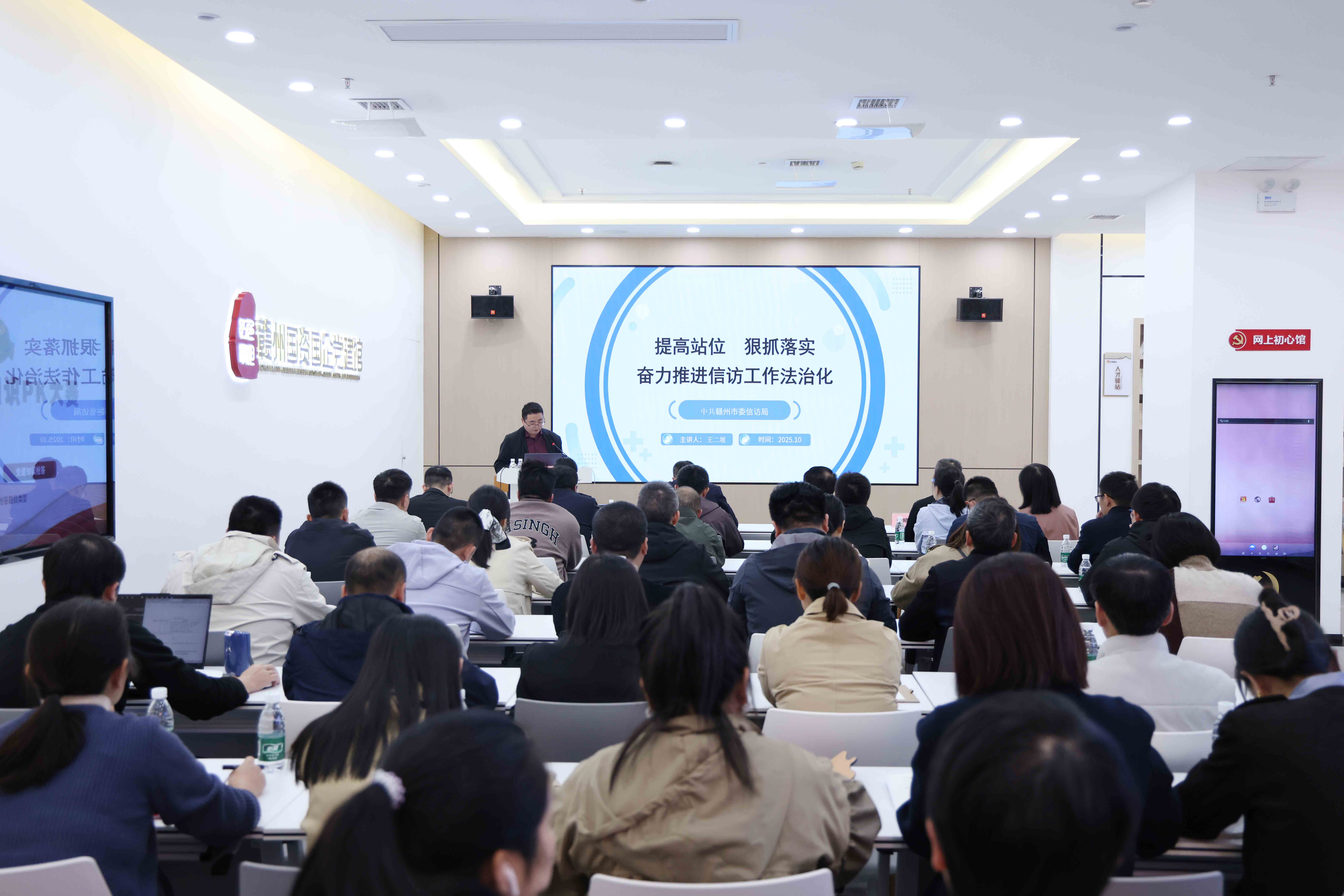 王二坡同志以“提高站位 狠抓落实 奋力推进信访工作法治化”为题,从信访工作法治化的意义与目标任务、依法依规信访工作指南等方面入手,以专业的理论知识,结合大量生动鲜活的案例,深入浅出地剖析了在具体工作中如何做到信访工作法治化,并对赣州数字“阳光信访”业务办理平台操作规范等方面内容进行了业务培训。