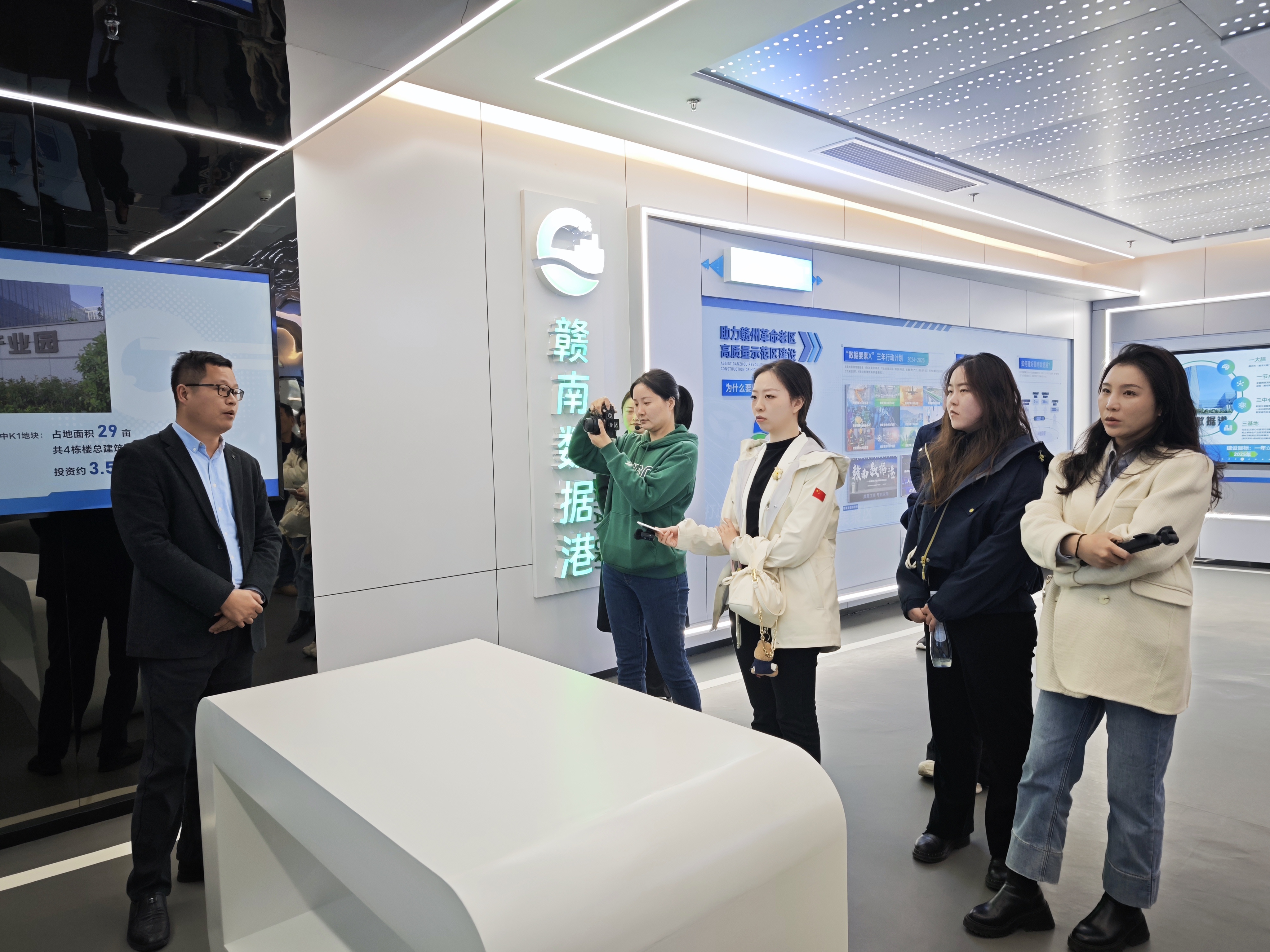 随后,采访团深入数产集团赣南数据港、“数字大脑”等项目现场,全面了解数产集团自成立以来的发展历程,核心业务及产业架构。作为承接全国数联网基础设施试点城市中唯一的中部地区普通地级市,在面临无经验可循、产业基础薄弱、配套资金有限等多重挑战的情况下。市国投集团及下属数字产业集团主动担当,争取中央及省级预算内资金,为试点建设提供了坚实的制度保障和资金支持。目前项目已顺利完成国家中期评估,在全国率先完成了数据流通利用平台、公共数据授权运营平台等四大模块上线运行,获得了国家及省级主管部门的肯定。