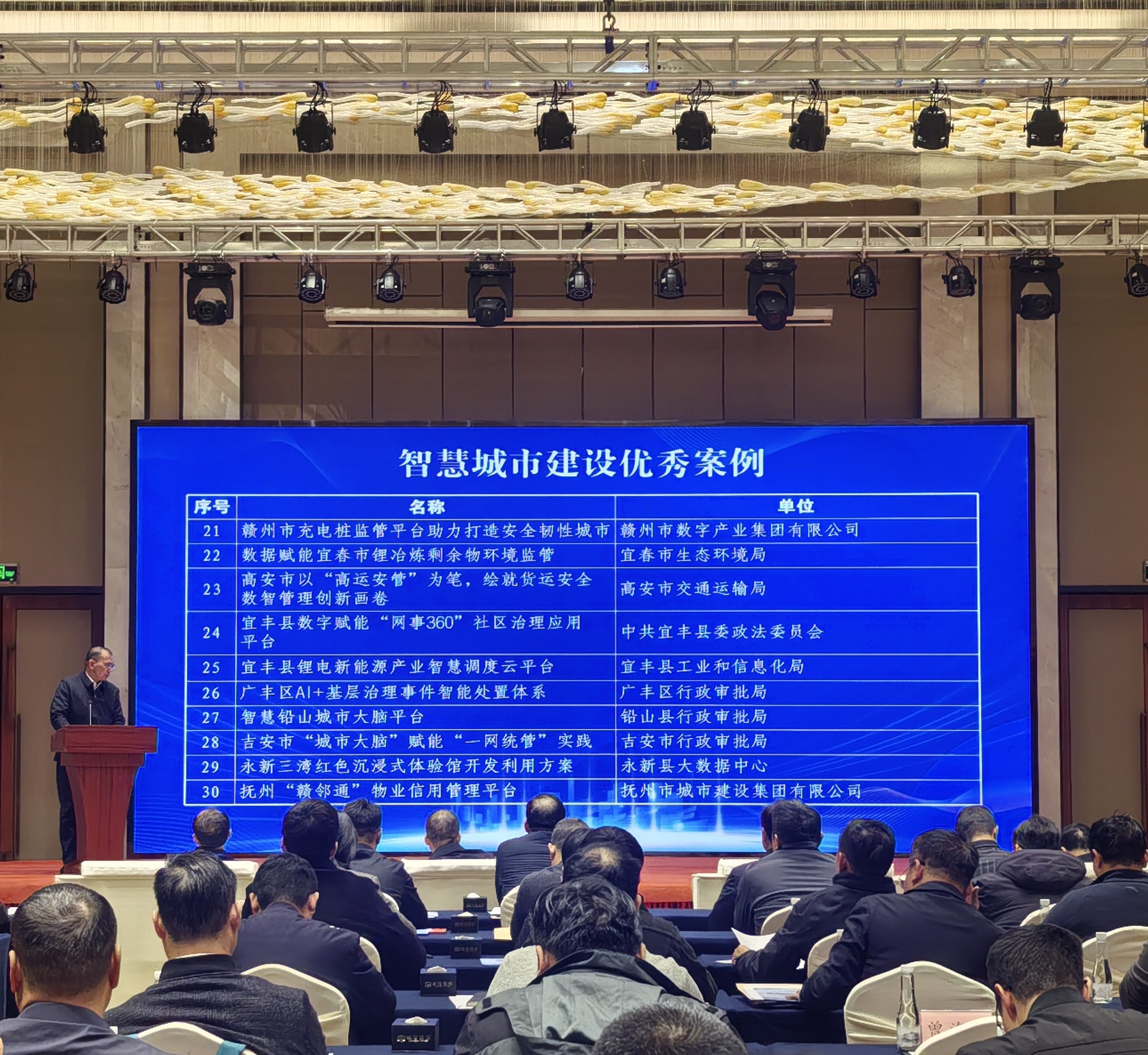 12月25日,江西省深化智慧城市建设现场会在赣州召开,全省100余名参会嘉宾齐聚赣州,共话智慧城市建设新路径、共谋数字经济发展新篇章。会上,由赣州市行政审批局牵头建设并申报、赣州国投集团下属数产集团承建的“数字大脑赋能社会治理一网统管”项目以及赣州国投集团下属数产集团承建并申报的“充电桩监管平台”项目,获评江西省智慧城市建设优秀案例。这既是对集团在智慧城市建设领域技术积累的肯定,更是对赣州以数字化转型推动城市治理现代化实践的认可。