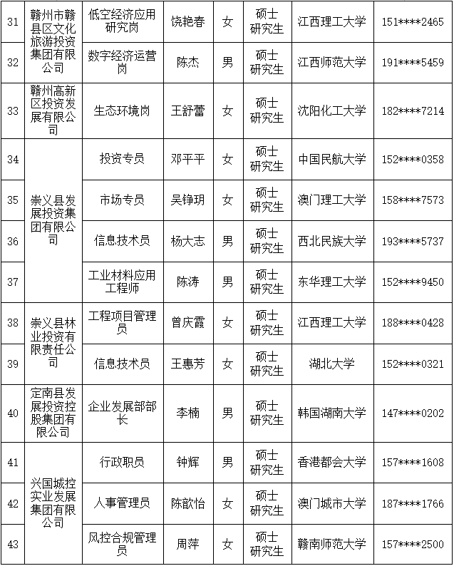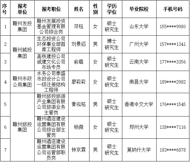 赣州市国有企业2025年组团引才(郑州站)进入 背景调查及体检人员名单公示