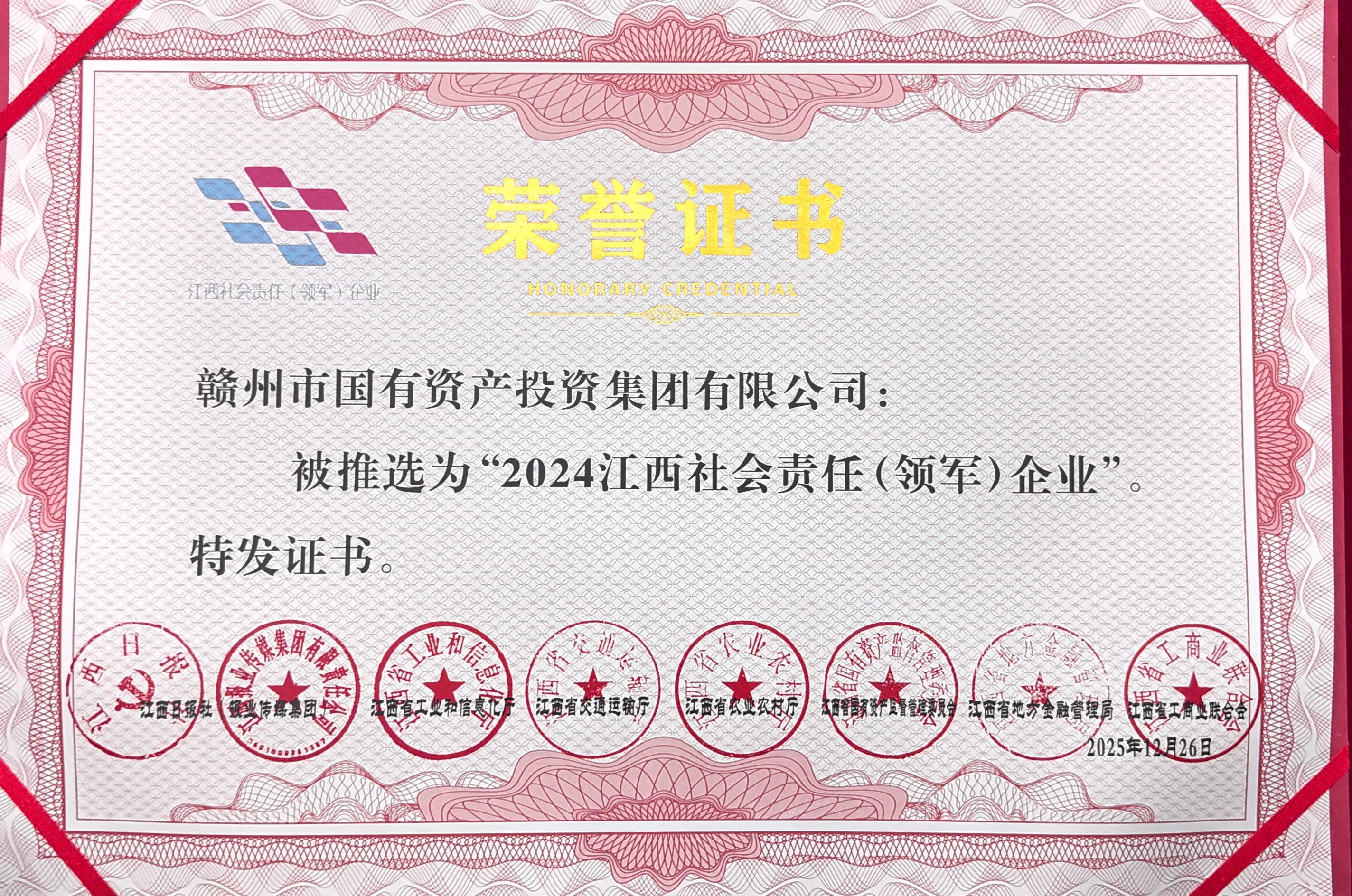 12月29日下午,2024江西社会责任(领军)企业(企业家)发布会在南昌举行,赣州市国投集团荣获“2024江西社会责任(领军)企业”殊荣,受集团党委书记、董事长罗迅委托,集团领导罗红发参加活动并领奖。
